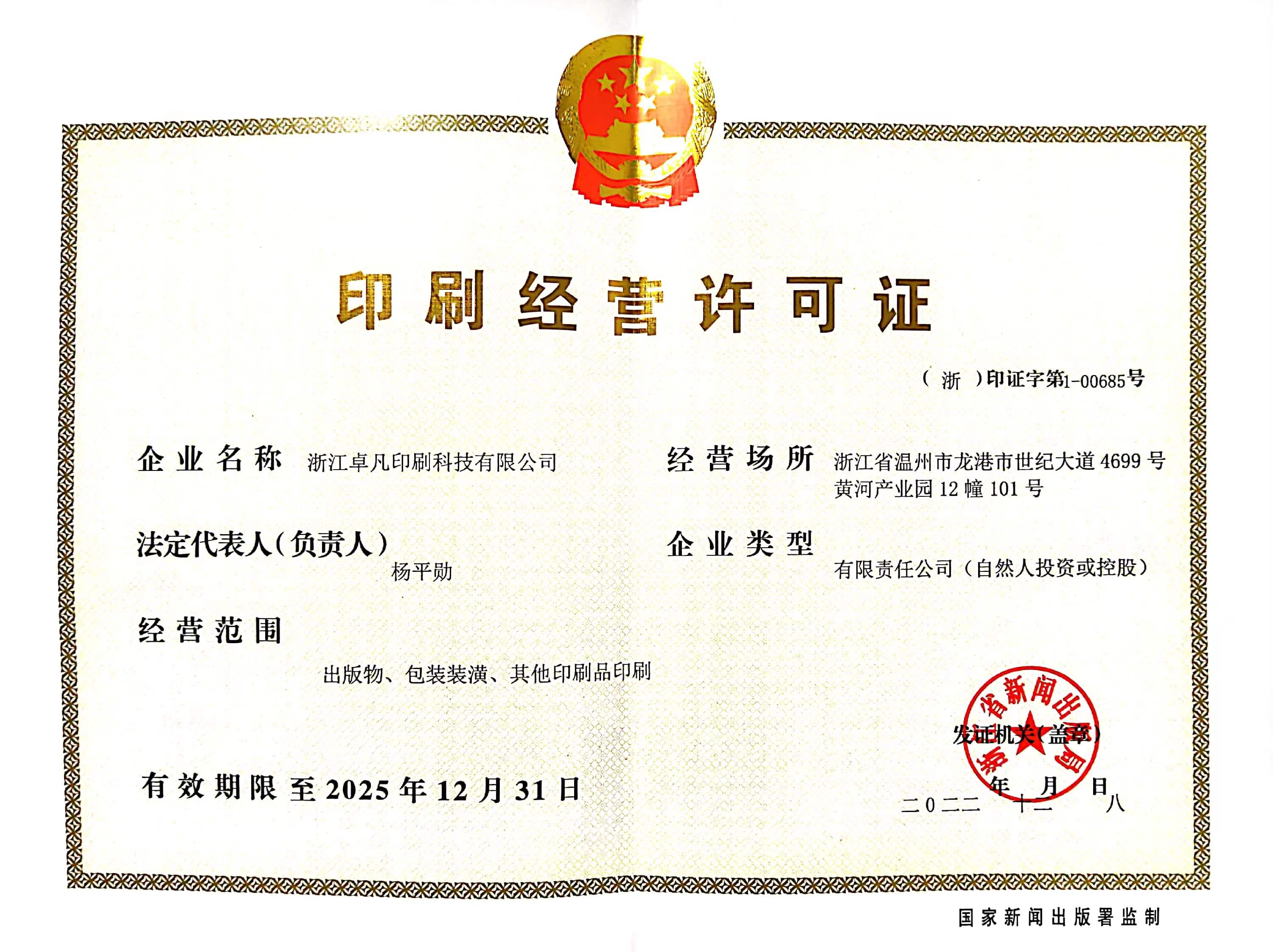 【 印刷經(jīng)營許可證 】 (浙)印證字第1-00685號