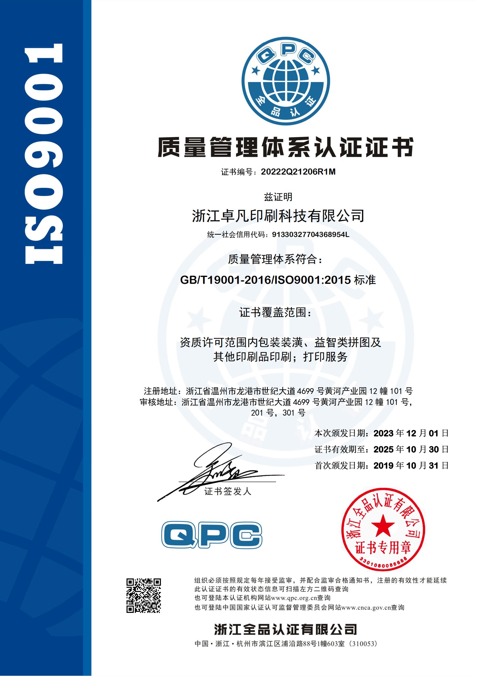 【 ISO9001質量認證 】 證書編號:20222Q21206R1M