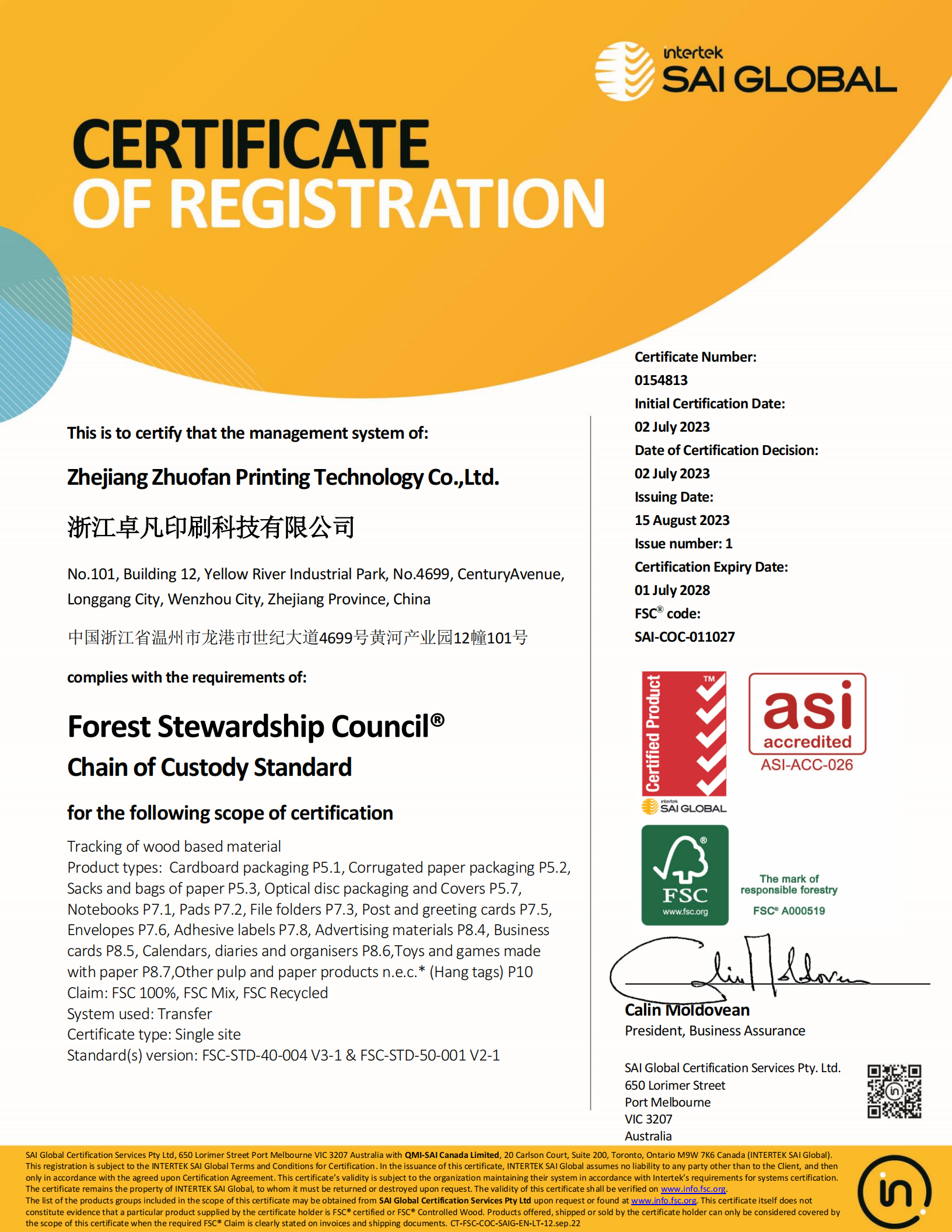 【 FSC森林認證證書 】