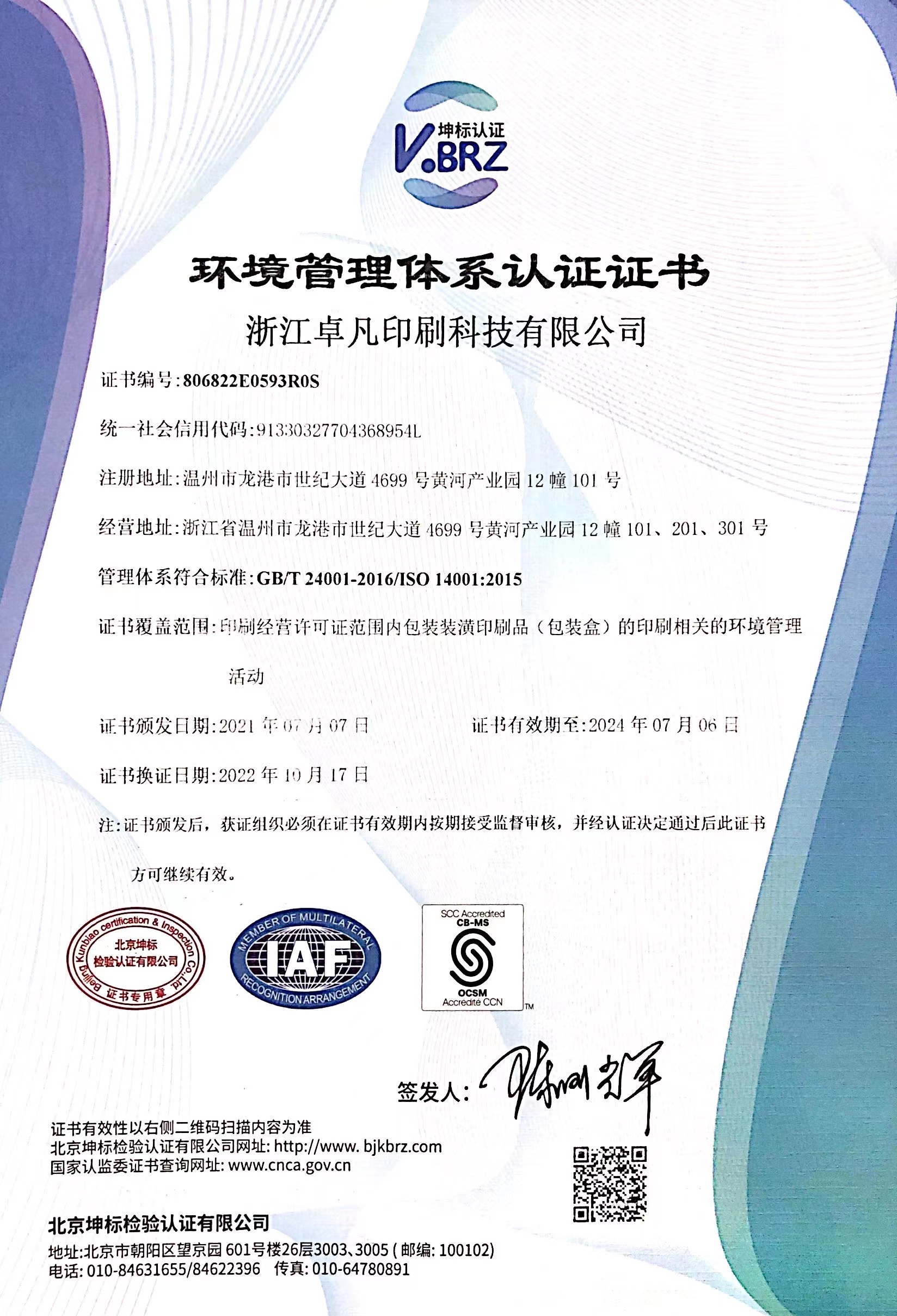 【 環(huán)境管理體系認證證書 】